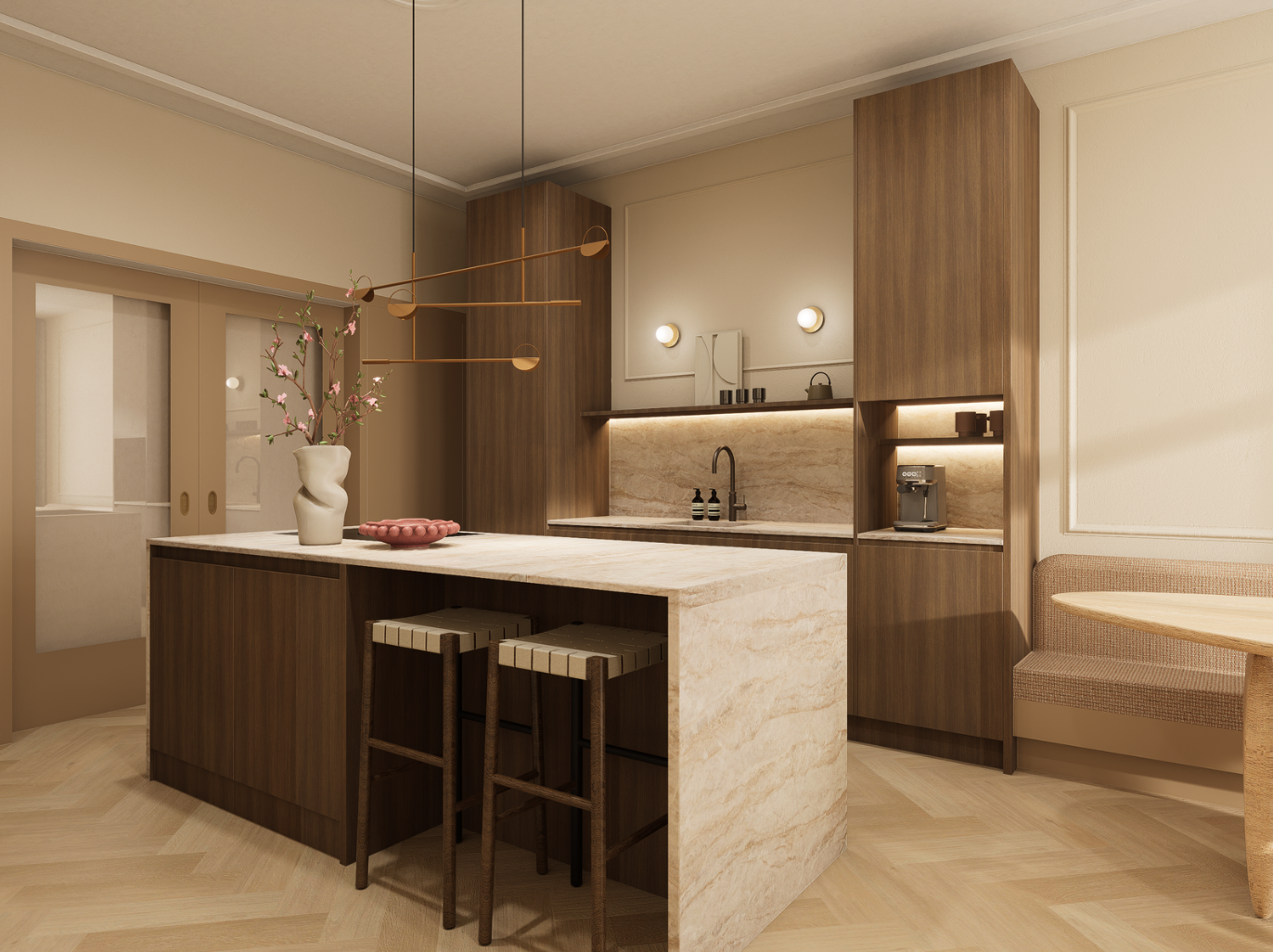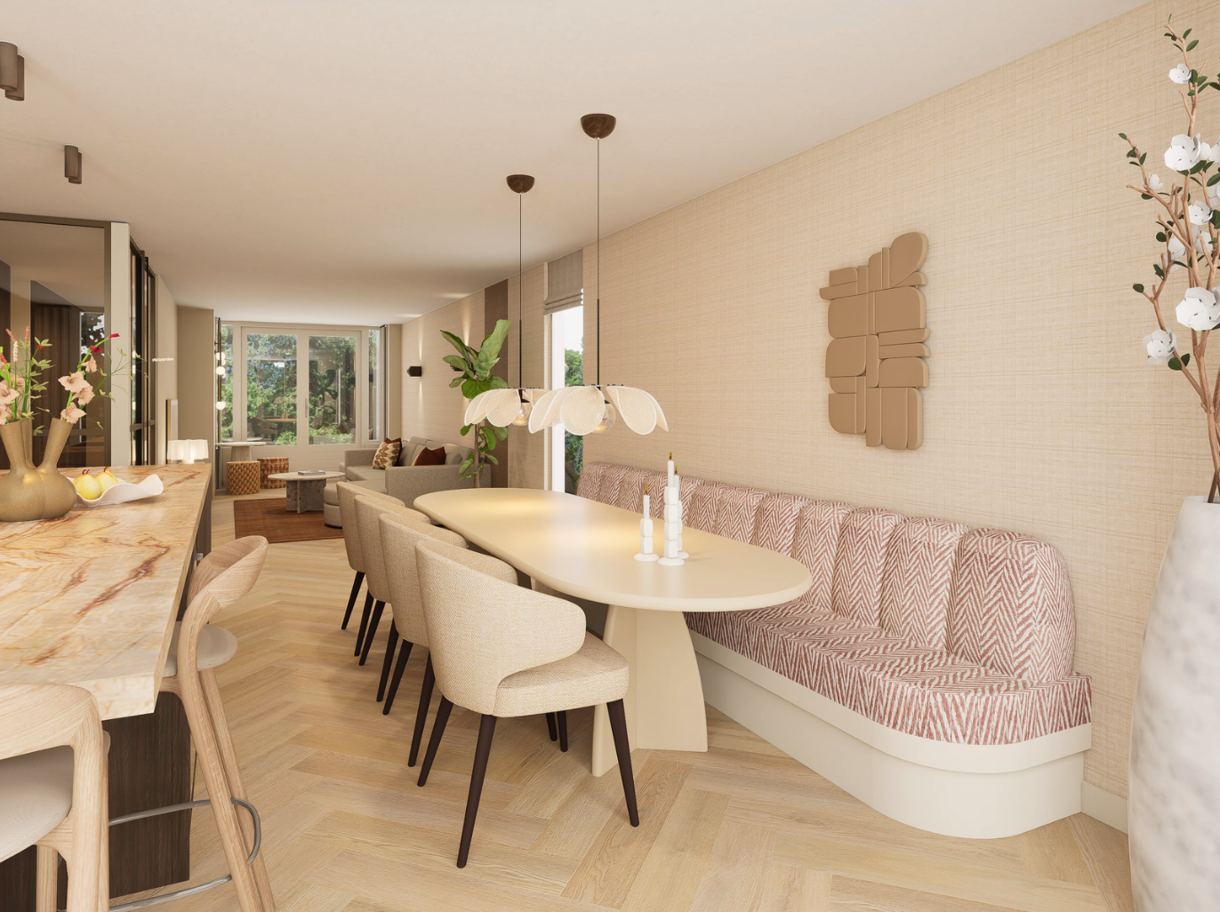 Mijn ontwerpen worden vaak als ‘zen’ ervaren. Hoe fijn is het als jouw eigen thuis een oase van rust is waar je altijd weer terugkomt om op te laden? Ik ben gek op natuurlijke materialen zoals hout, marmer, travertin en wol. Materialen die je huis warm en aangenaam maken. Daarnaast voeg ik graag een sprankje kleur toe, want het moet niet te saai worden. Verder moet een huis vooral praktisch zijn. Mooi, maar geen showroom, voldoende opbergruimte en knusse plekjes om jezelf terug te kunnen trekken.